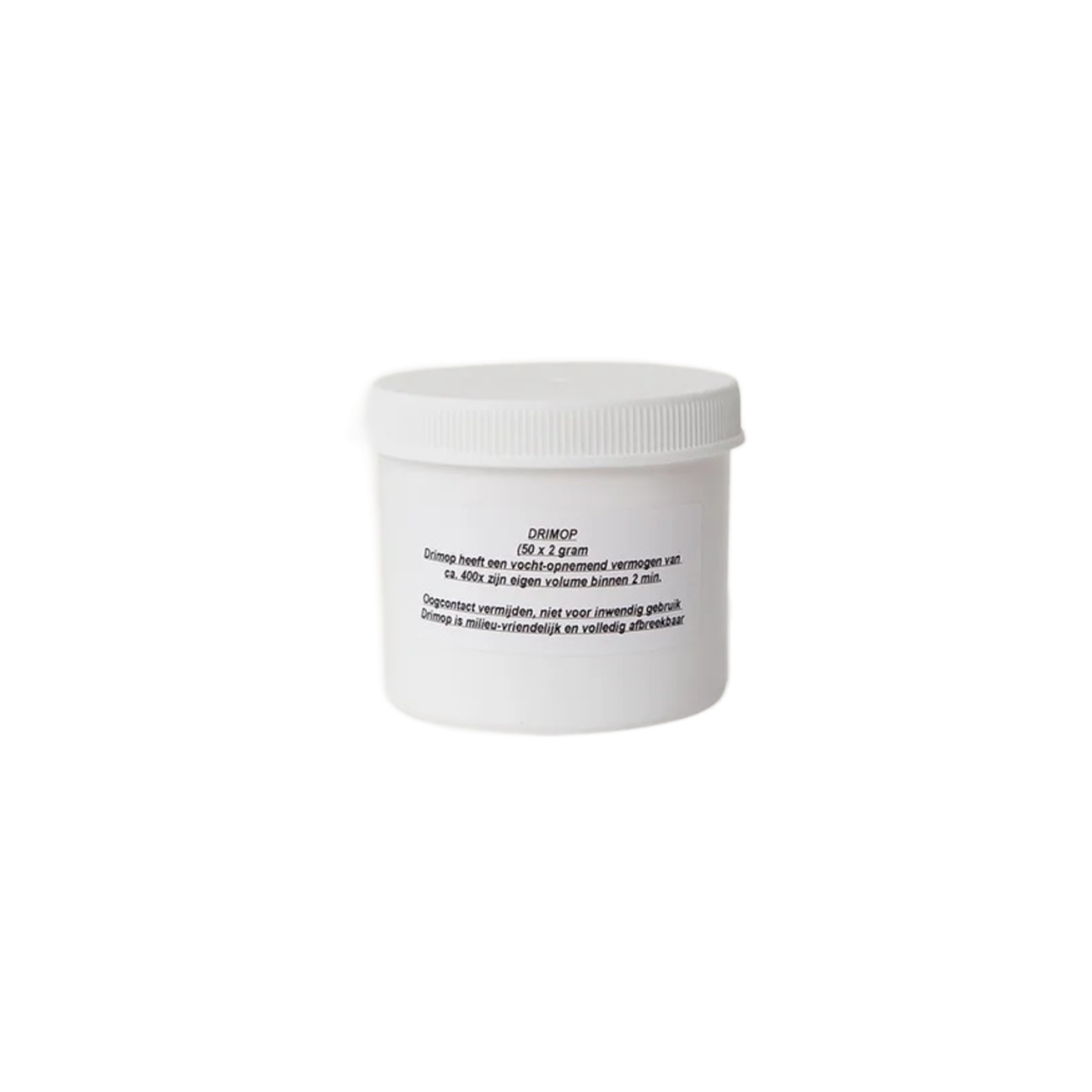 Drimop heeft een groot opnamevermogen van 400 maal het eigen volume binnen twee minuten. Drimop kan worden gebruikt voor het afsluiten van elke natuurlijke opening en holte van het lichaam, voorkomt overtollig afvloeien en zorgt voor een goede bescherming.