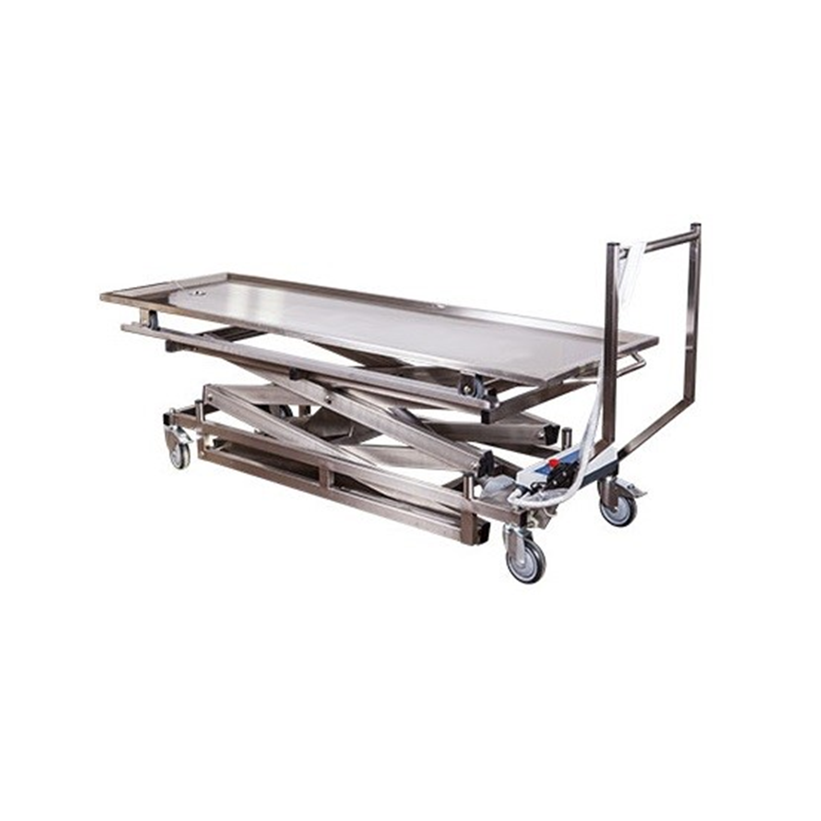 Volledig elektrische heftafel voor het vervoer van de overledene. Volledig uitgevoerd in geborsteld roest vast staal. (304). De heftafel is in hoogte verstelbaar is is zeer stabiel.