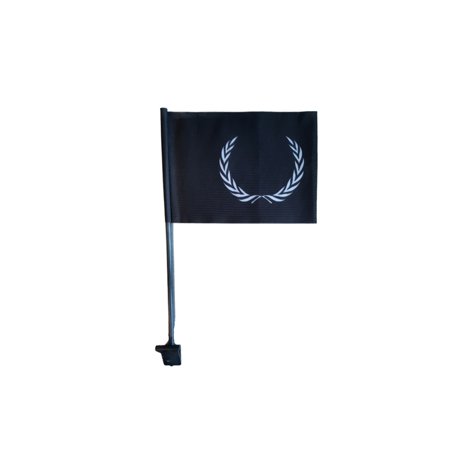 Rouwvlaggen of autovlaggen met een krans. De vlaggen worden geleverd met een klem voor bevestiging.